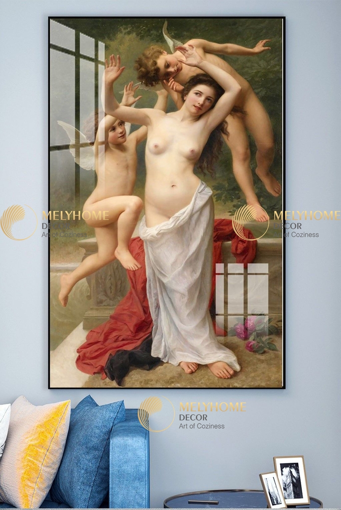 Tranh treo tường đơn dọc Cô gái khoả thân chân dung sơn dầu Phục Hưng Châu Âu (tỷ lệ 2:3) -6