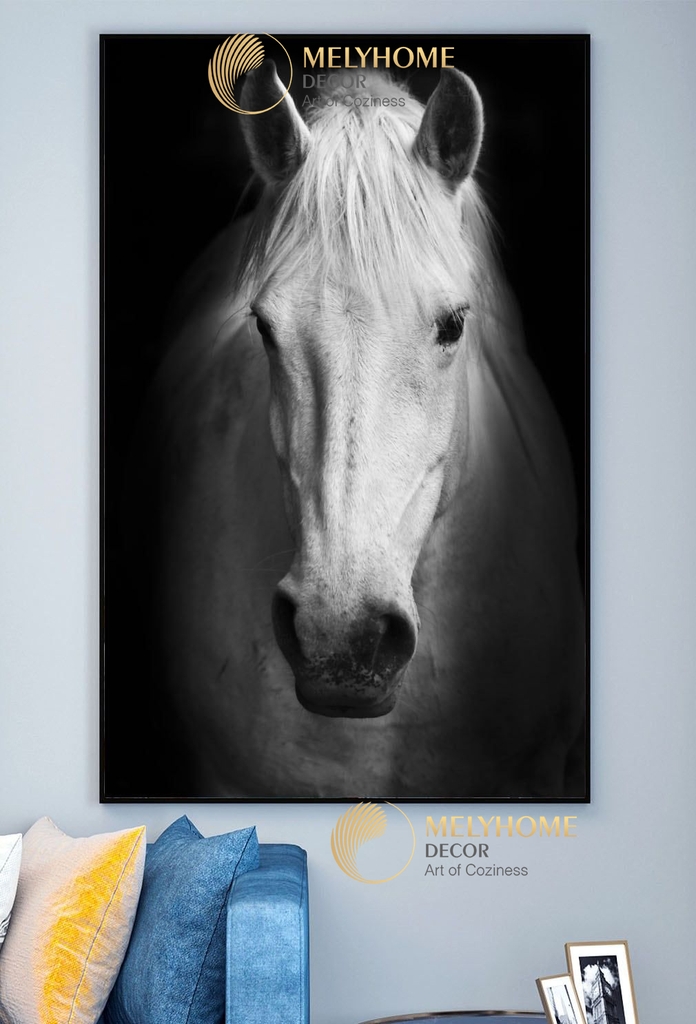 Tranh treo tường đơn dọc canvas Tráng gương ngựa hiện đại (tỷ lệ 2:3) -3