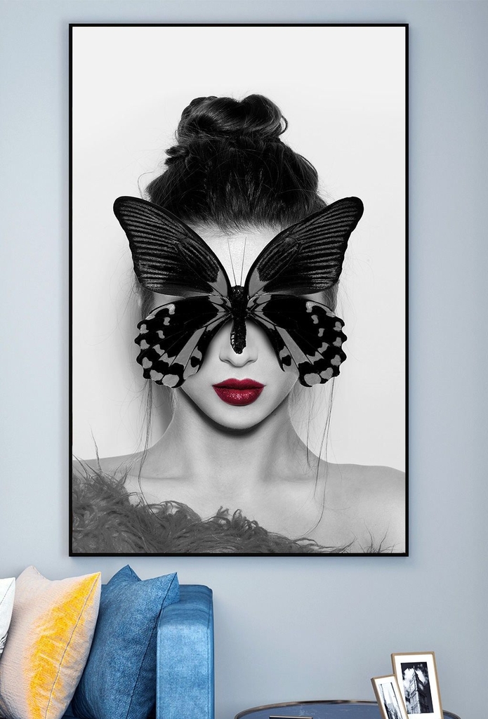 Tranh đơn Tráng gương cao cấp chân dung cô gái bươm bướm nghệ thuật bí ẩn 6